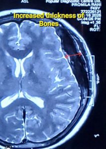 * মাথার খুলির আকার বৃদ্ধি (Enlargement of Skull): মাথার খুলির হাড় বড় বা বিকৃত হতে পারে, যার ফলে মাথা বড় মনে হতে পারে। কখনো কখনো টুপি বা হেলমেট পরতে অসুবিধা হতে পারে।